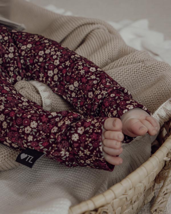 Handgemaakt broekje in de stof winterbloemen burgundy. Deze stof is bedrukt met diverse gekleurde bloemen. Deze stof heeft een burgundy achtergrond. Ideaal te combineren met onze bruin, burgundy en sand kleuren.