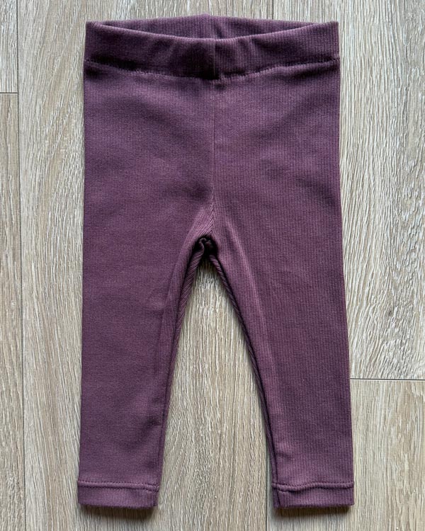 Handgemaakte legging in de stof burgundy (fijne rib).